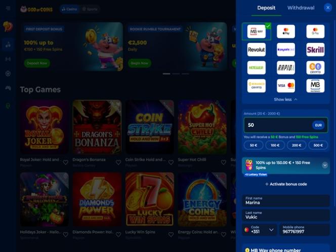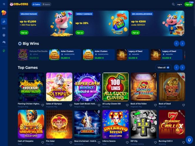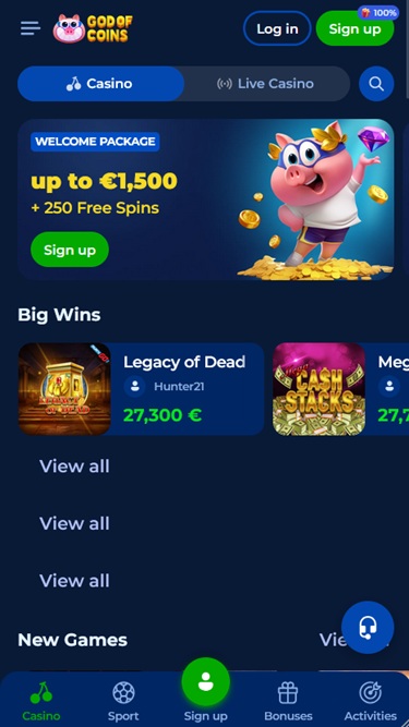 God Of Coins 賭場是一家根據庫拉索法律註冊成立的體育博彩網站和線上賭場,面向波蘭、希臘、葡萄牙和澳洲的玩家。我們參觀時,該賭場正在申請由博彩監管委員會 (GCB) 頒發的牌照。