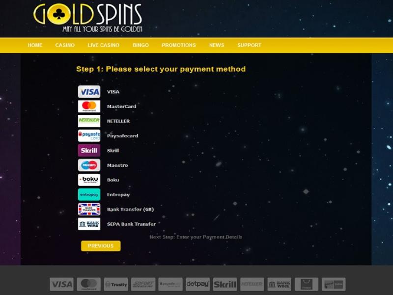 Gold Spins Casino 由 Net Entertainment, BetSoft, ELK Studios, Ezugi, Quickspin, 2by2 Gaming, Aristocrat, Blueprint Gaming, Leander Games, multicommerce, NextGen and White Hat Gaming提供支持,其遊戲透過網頁平台提供。此外,我們也提供行動端網站,方便那些想在小螢幕裝置上玩遊戲的使用者。