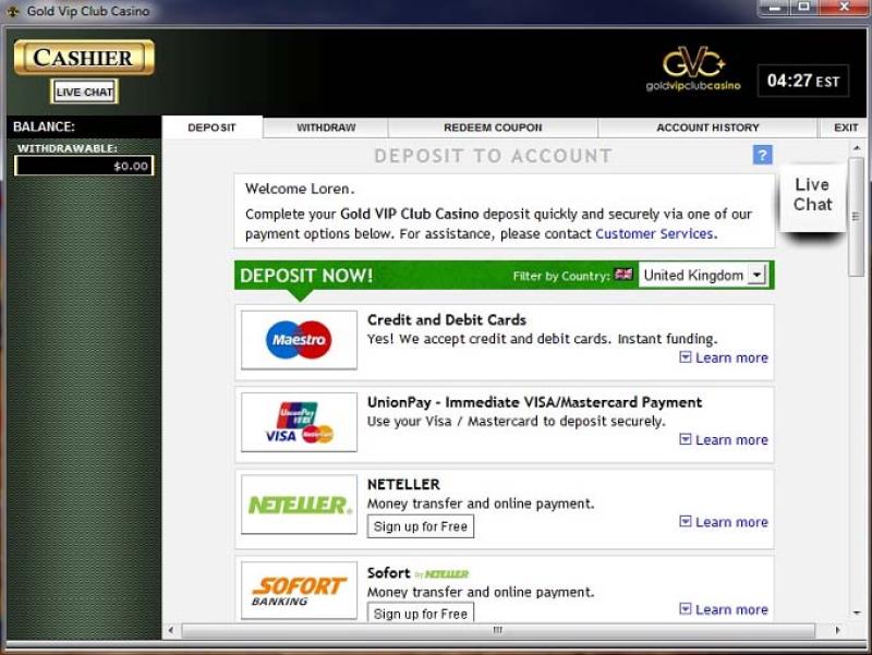 Gold VIP Club Casino 由 Real Time Gaming提供支持,玩家可以透過可下載的軟體或基於網路的平台存取其庫。Baccarat