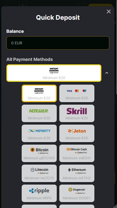 由於 Golden Crown 支持加密貨幣,其銀行系統速度很快。付款幾乎是即時的,支援比特幣、萊特幣、以太坊、比特幣現金、狗狗幣和泰達幣。每月提現限額為 15,000 美元,對於高額玩家來說,這個限額有點低。