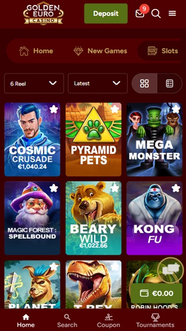 老虎機是金歐元賭場 (Golden Euro Casino) 遊戲庫中最大的組成部分,涵蓋了從經典的三軸老虎機到現代視訊老虎機等各種遊戲,這些老虎機都配備了一系列精彩功能,提升了遊戲體驗。此外,賭場還提供多個累積獎金,讓玩家有機會贏得超過一百萬美元的獎金。