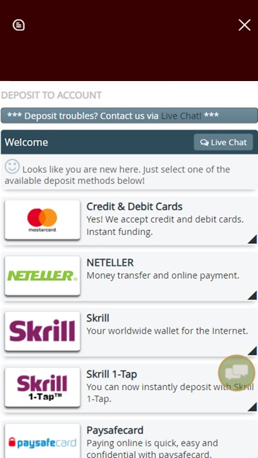 €5(Paysafecard)/€20 (Credit/Debit Cards)