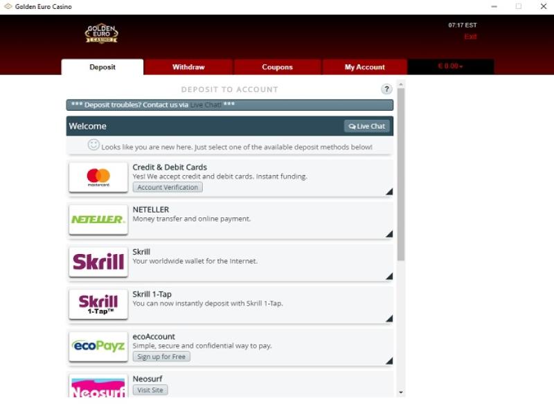 Banking銀⾏業務選項 的 Golden Euro Casino