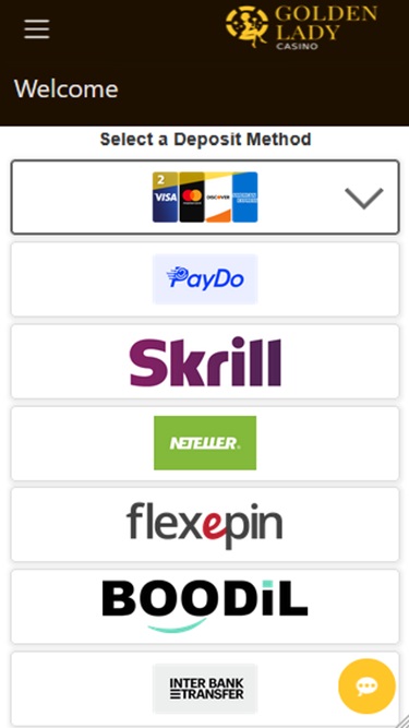 Banking銀⾏業務選項 的 GoldenLady Casino