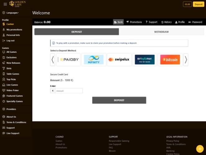 讓我們來看看在滿足會員的賭博需求和為他們提供一流的遊戲內容方面,Golden Lady 是否也將其會員放在首位。