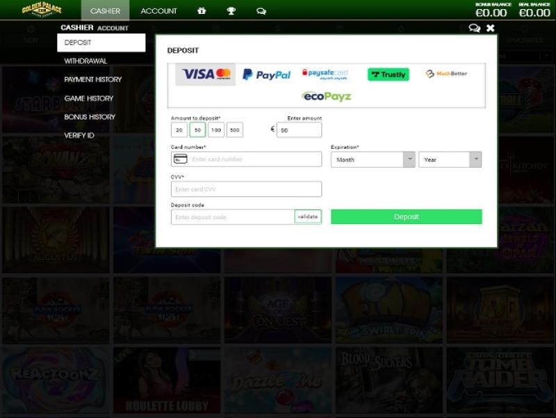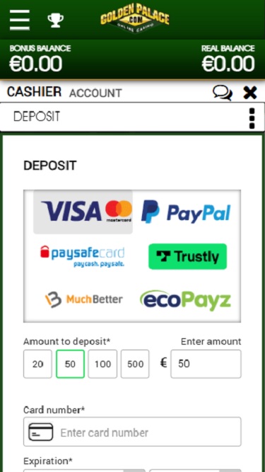 Golden Palace Casino 由 Microgaming, Net Entertainment, BetSoft, 1x2gaming, Barcrest, Big Time Gaming, ELK Studios, Evolution Gaming, EYECON, Ezugi, Habanero Systems, lightningboxgames, Play'n GO, playson, Rabcat, Rival, Thunderkick, Vivo Gaming, Wazdan, PlayPearls, Pragmatic Play, Nolimit City, Red Tiger Gaming, Booongo, LuckyStreak, Spinomenal, Skillzzgaming, Fugaso, Kalamba, Triple Edge Studios, Northern Lights Gaming, Evoplay, Stormcraft Studios, Switch Studios, All41 Studios, Gluck Games, TVBet, Gameburger Studios, Pulse 8 Studios, Neon Valley Studios, Super Spade Games, Shuffle Master, SpinPlay Games, Real Dealer Studios, GONG Gaming, On Air Entertainment, Buck Stakes Entertainment, Caleta Gaming, Games Global, 2by2 Gaming, Blueprint Gaming, Games Warehouse, NextGen, ProgressPlay, Tom Horn Gaming, WMS, Inspired Gaming, SG Interactive, Red7Mobile, CORE Gaming, Scientific Games, Mr Slotty, Reel Time Gaming, Iron Dog Studio, Old Skool Studios, Foxium, Betdigital, Just For The Win, PearFiction Studios, Wild Streak Gaming, Slingshot Studios, Fortune Factory Studios, Gamevy, Crazy Tooth Studio, ReelPlay, Alchemy Gaming, Black Pudding Games, Snowborn Games, Hacksaw Gaming, SimplePlay, Gold Coin Studios, Half Pixel Studios and Aurum Signature Studios提供支持,讓玩家有機會透過可下載的軟體以及基於網路的平台玩遊戲。Baccarat