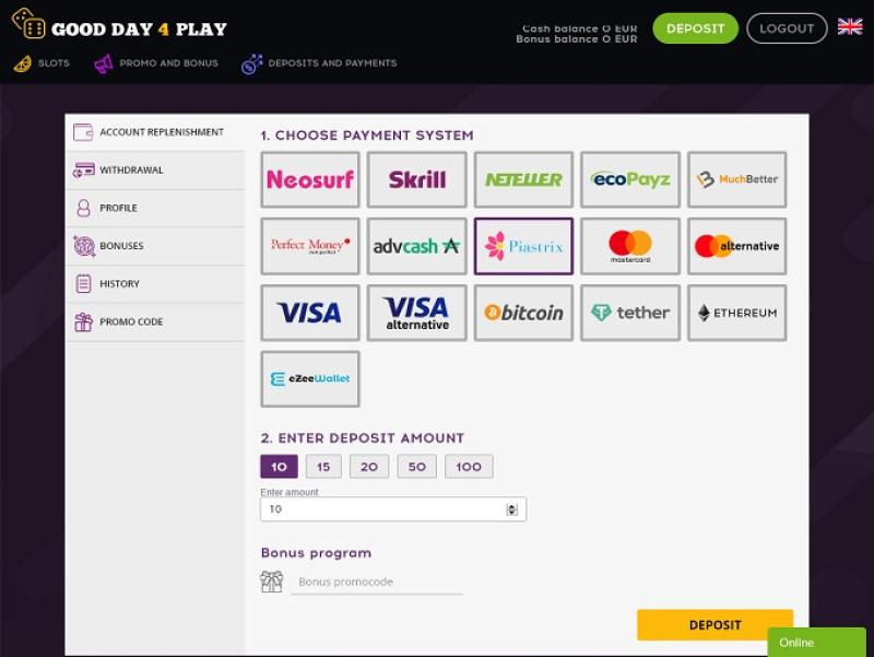 GoodDayForPlay 賭場是一個線上博彩網站,由 WoT NV Limesco Ltd. 於 2015 年建立。賭場專注於歐洲博彩市場(英國除外),擁有大量遊戲,但模糊的獎金條款和複雜的補償系統可能會讓賭客猶豫是否要在那裡玩。
