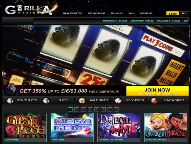 Gorilla Casino 由 Multi Slot Casinos, OpenBet and Parlay Entertainment提供支持,可讓您直接在網頁瀏覽器中玩遊戲。Banking銀⾏業務選項 的 Gorilla Casino