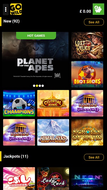 GoWild Casino 由 Microgaming, Net Entertainment, Playtech, BetSoft, 1x2gaming, iSoftBet, lightningboxgames, Oryx, Play'n GO, playson, Rabcat, Yggdrasil, Endorphina, Wazdan, Realistic Games, Booming Games, Pragmatic Play, Nolimit City, Red Tiger Gaming, Red Rake Gaming, Fantasma Games, Kalamba, Triple Edge Studios, Stormcraft Studios, Switch Studios, Electric Elephant Games, All41 Studios, Gameburger Studios, Pulse 8 Studios, Neon Valley Studios, Golden Rock Studios, SpinPlay Games, Games Global, Amusnet Interactive, 2by2 Gaming, Ainsworth, Tom Horn Gaming, Gamomat, Authentic Gaming, Iron Dog Studio, Foxium, Just For The Win, Slingshot Studios, Golden Hero, Fortune Factory Studios, Gamevy, Crazy Tooth Studio, Snowborn Games and Half Pixel Studios提供支持,為玩家提供數百款遊戲。其龐大的遊戲庫得益於 Quickfire 平台,該平台引入了一系列與 Microgaming 簽訂了分銷協議的小型開發商。