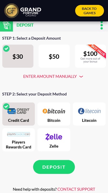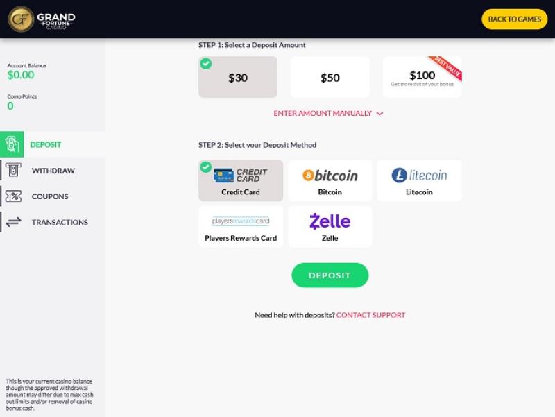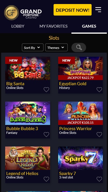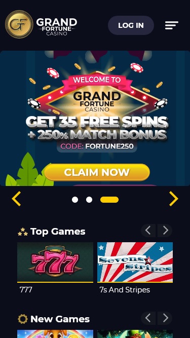 Grand Fortune 賭場由 Real Time Gaming and Spinlogic Gaming提供支持,其遊戲透過網頁即時遊戲模式以及可下載的軟體提供。此外,也提供行動賭場,方便使用智慧型手機或平板電腦的玩家暢玩。