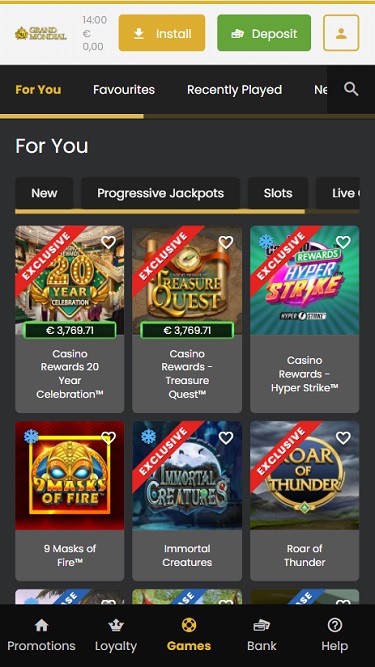 Grand Mondial 賭場於 2006 年開業,是 Casino Rewards 旗下擁有並經營的幾家賭場之一。該賭場普遍受到顧客的好評,他們喜歡超過 400 種遊戲和優質的服務,但不一定認可賭場對非累積獎金的提款限制。賭場資訊