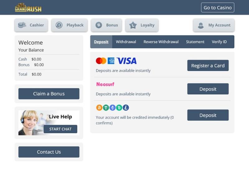 Grand Rush Casino 的會員資格包括接受以下重要規則: