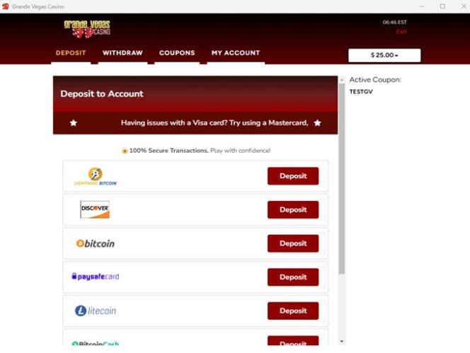 Grande Vegas 賭場由 Real Time Gaming and Spinlogic Gaming提供支持,為全球玩家提供數十款遊戲。您可以透過可下載的軟體或允許即時遊戲的網頁平台存取賭場。
