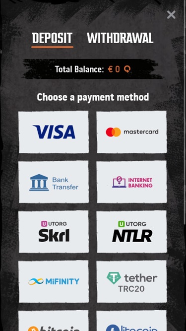 賭場出納員提供多種付款選項,例如銀行轉帳、加密貨幣錢包、信用卡和金融卡、Neteller、Skrill、 Revolut以及其他流行的電子錢包和網路銀行系統。為了確認您所在的博彩管轄區是否支援某個選項,建議您造訪「付款」頁面,選擇您的國家/地區和貨幣,並查看支援的付款方式清單。