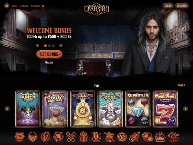 乍一看,這家賭場給人的印像是氣氛非常宜人。熱愛音樂的玩家尤其會喜歡這家線上賭場,因為音樂是Gransino的主旋律。主頁擁有精美的圖形和細節,玩家一定會喜歡。除了有趣的圖標外,還有促銷橫幅和幻燈片,以及眾多介紹賭場產品的實用頁面和版塊。我們建議所有訪客查看頁腳部分,在那裡他們可以了解賭場的促銷活動、錦標賽、每週挑戰、賭場的會員計劃、付款選項等等。