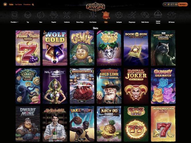 在遊戲提供者方面,Gransino 與許多賭場軟體開發商合作,其中包括行業領導者和 iGaming 先驅。此外,眾多小型工作室也為這個龐大的遊戲庫貢獻了他們的創新成果。其中包括Evolution Gaming、 Microgaming 、Relax Gaming、Quickspin、Endorphina、Spinomenal等許多知名遊戲供應商。如此眾多的公司貢獻了他們的高品質內容,玩家無疑會在各種遊戲類別中找到豐富多樣的娛樂體驗,包括獨家遊戲、獎勵購買遊戲、真人遊戲、老虎機遊戲、累積獎金遊戲、Megaways 遊戲、桌上遊戲、即時遊戲等等。