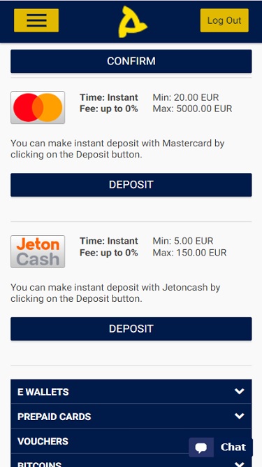 此線上賭場接受歐元付款。提款前,玩家必須進行5倍賭場存款和10倍真人娛樂場投注。否則,平台將對所有存款/提款收取10%的手續費。財務部門可能需要最多兩個工作天來處理提款;累積獎金的每週最高提款限額非常低。