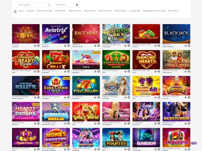 光是老虎機庫就擁有超過3000款遊戲,由許多優秀的軟體供應商提供。會員將盡情享受各種新遊戲、視訊老虎機和經典老虎機,以及豐富的累積獎金、桌上遊戲、刮刮卡、虛擬遊戲、撲克和賓果遊戲。無論您使用何種裝置——智慧型手機、平板電腦還是個人電腦——都可以透過搜尋框或篩選功能找到大多數遊戲。