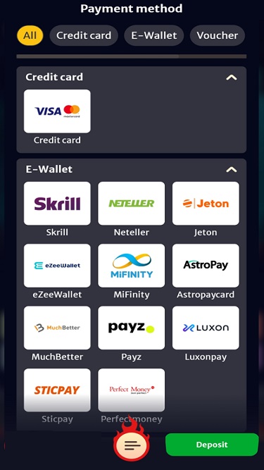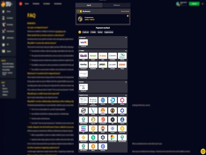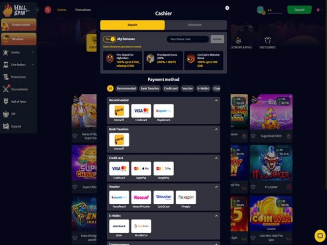 HellSpin Casino 支援多種廣泛使用的支付方式,玩家可以自由選擇進行存款和提款。收銀員支援信用卡和金融卡、 Skrill 和 Neteller等熱門電子錢包、加密貨幣銀行選項以及其他線上支付系統: