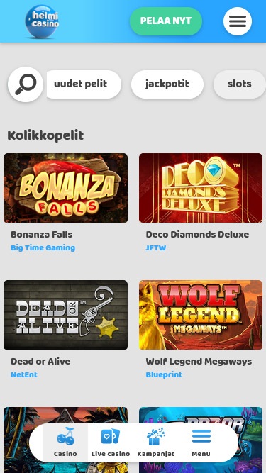 正如我們已經提到的,Helmi Casino 的遊戲庫充滿了由行業大公司設計和創建的吸引人的賭場遊戲,例如:NetEnt、Quickspin、Yggdrasil……這些公司以及許多其他遊戲工作室為賭場的遊戲系列提供了頂級遊戲,保證帶來很多刺激和娛樂。