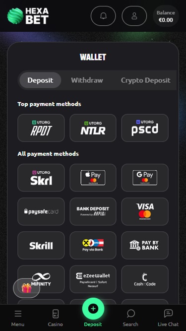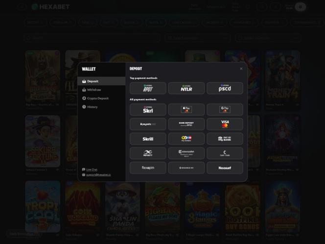 Banking銀⾏業務選項 的 Hexabet Casino