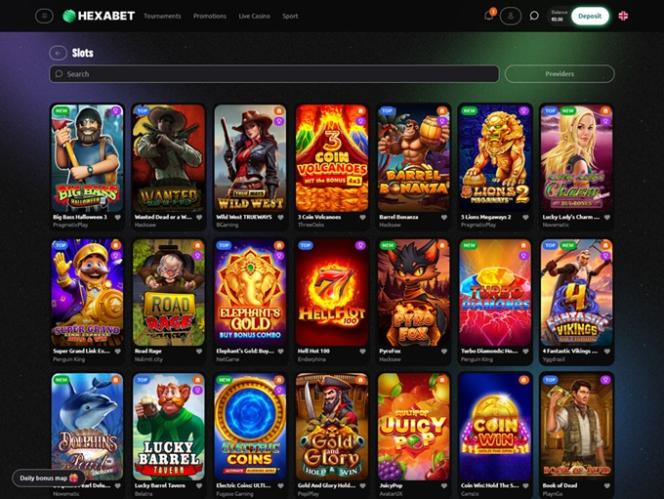 在 Hexabet 賭場,您可以瀏覽來自 100 多家獨特工作室的遊戲。這無疑是一個嚴謹的供應商列表,確保每種類型的玩家都能找到他們想要的遊戲。清單中既有知名開發商,也有小型工作室,保證您擁有一段美好的時光。