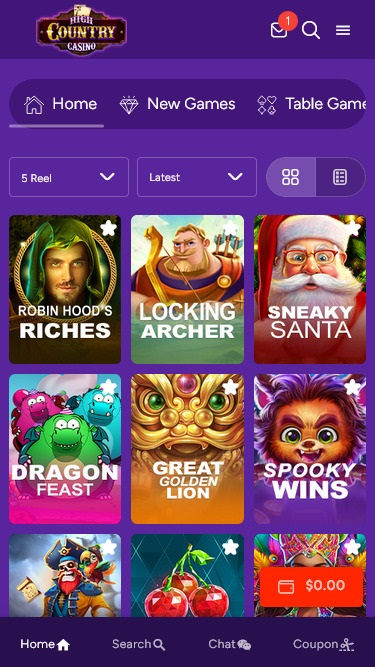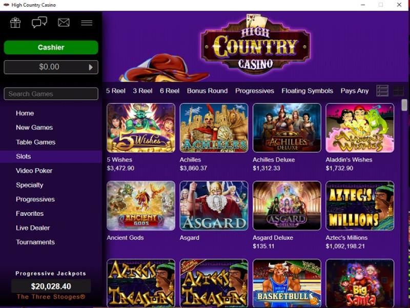 High Country 提供種類繁多的老虎機,既有經典風格的老虎機,也有現代的 5 捲軸老虎機。老虎機主題豐富多樣,但大多數玩法相似。現代風格的遊戲整體體驗更佳,並且支援行動端老虎機遊戲。此外,這裡還提供累積獎金,讓您有機會(微不足道)透過一次旋轉贏得巨額現金獎勵。