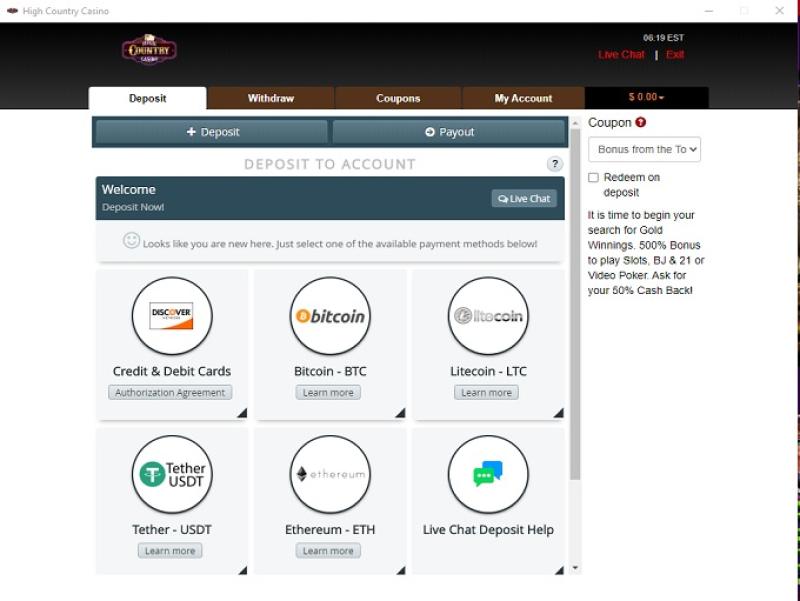 High Country Casino 由 RTG 提供支持,賭場遊戲可透過下載軟體和網頁平台進行。除非您的網路速度很慢,否則我建議您使用網頁版,因為它無需在電腦上安裝任何軟體。它支援行動端遊戲,您可以在智慧型手機和平板電腦上暢玩。