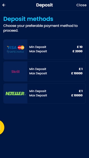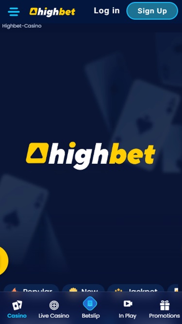 註冊過程快捷,只需兩個標準註冊步驟。完成後即可進入玩家控制面板,並有機會開始探索 Highbet 的各項服務。