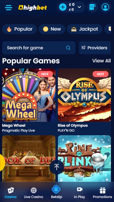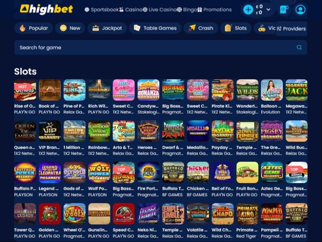 營運商與知名線上賭場軟體開發商合作,為 Highbet 提供全方位的賭場遊戲。許多知名公司都名列其遊戲供應商之列(Evolution Gaming、Ezugi、NetEnt、Microgaming、Yggdrasil…)。