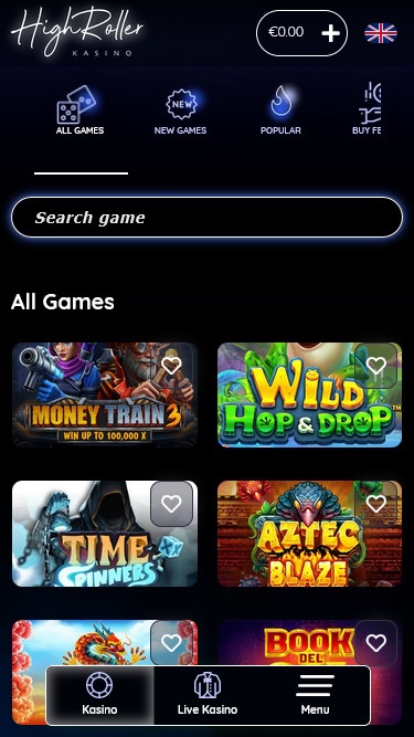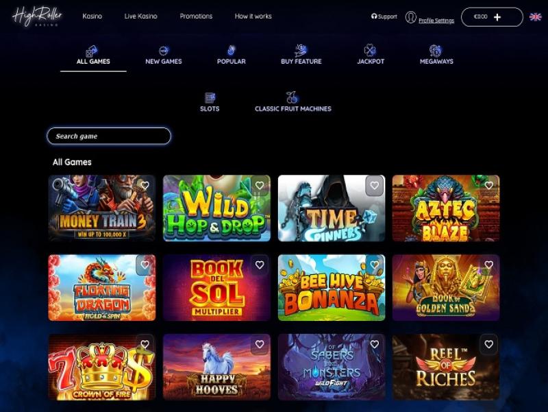 Highroller Kasino 精挑細選合作夥伴,其合作夥伴名單上既有知名的賭場軟體開發商,也有許多小型遊戲工作室,這大大豐富了遊戲庫的多樣性。以下是熱門類別中部分可用遊戲的片段: