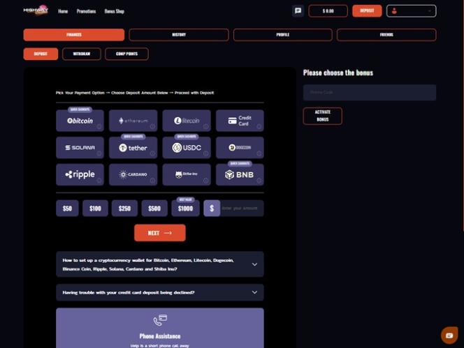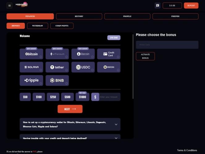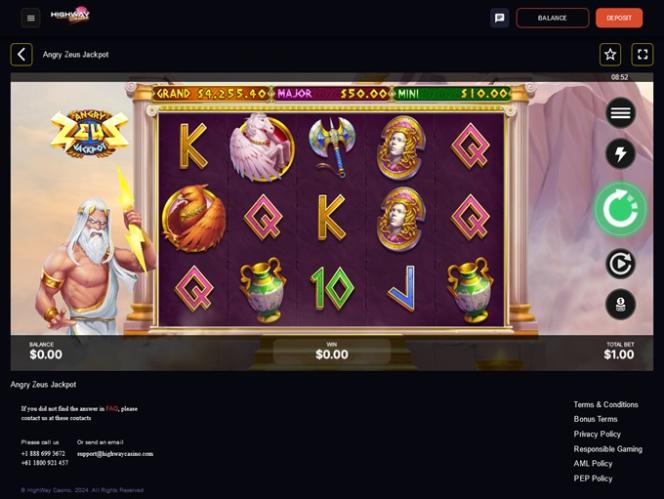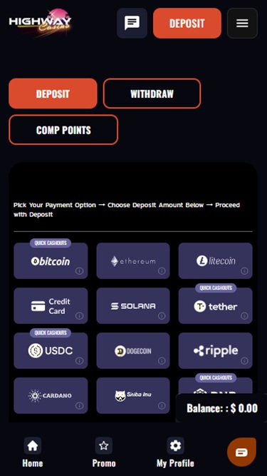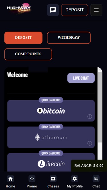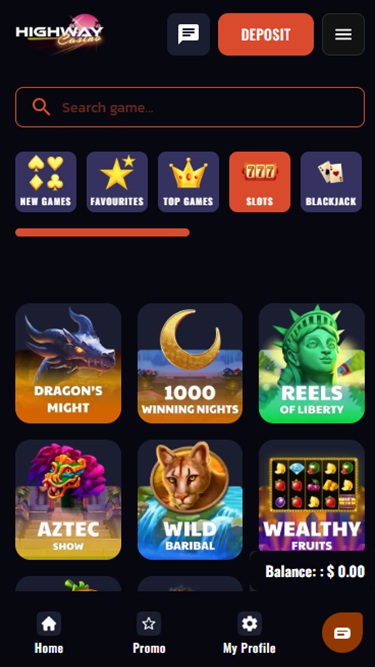 Highway Casino 由 Real Time Gaming, BetSoft, Rival, Saucify, Visionary iGaming, Betgames, Nucleus Gaming, Spadegaming, BGAMING, Genii, Wager Gaming, Dragon Gaming, FastSpin, Dragoon Soft and Urgent Games提供支持,所有遊戲均可透過您的網頁瀏覽器存取。網站介面美觀,易於瀏覽,設有搜尋欄,方便您尋找特定遊戲。 Highway Casino 也完全支援行動裝置遊戲,您可以根據需要在手機或平板電腦上暢玩。