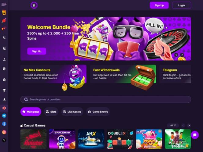 Hit Me Bet Casino 於 2024 年嶄露頭角,迅速進軍線上博弈界,為玩家帶來精彩的線上老虎機、桌上遊戲、真人荷官、即時遊戲、刮刮卡、賓果遊戲和虛擬體育賽事,同時提供豐厚的促銷計劃和會員計劃。該品牌也接受比特幣和以太幣等多種加密貨幣,讓您盡享加密貨幣帶來的許多便利,例如更快的提款速度。