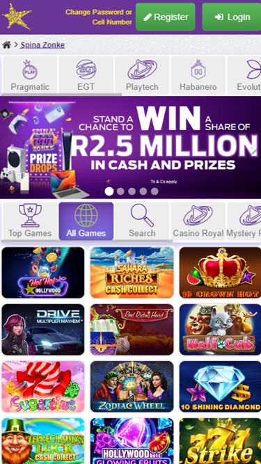 值得一提的是,Spina Zonke 擁有超過 1,200 款線上老虎機,玩家只需 15 美分即可暢玩,並擁有極高的賠付潛力。對於那些不想在賭博時傾家蕩產的玩家,以及不介意在老虎機上花費更多資金的豪賭客來說,Spina Zonke 是完美的選擇。一些熱門的 Spina Zonke 老虎機包括Gates of Olympus、Hot to Burn、Sugar Rush、Sweet Bonanza、Joker's Jewels 和 Chilli Heat。
