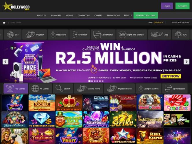 Hollywoodbets 賭場是一家先鋒領先的博彩品牌,專注於吸引南非玩家。自 20 世紀 90 年代末推出以來,這家博彩網站和體育博彩平台已成功提供豐富的體育博彩選項和眾多賭場遊戲,包括 Spina Zonke 線上老虎機、真人荷官、桌面遊戲和速成遊戲。賭場還提供各種促銷活動、體育獎金、活動和錦標賽供玩家參與。