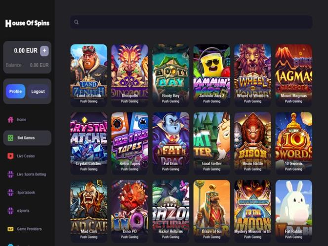 House of Spins 理所當然地擁有海量老虎機遊戲庫,其中不乏頂級遊戲。我們對擁有如此品牌的賭場寄予厚望,而玩家們也一定不會對其提供的老虎機遊戲選擇感到失望。