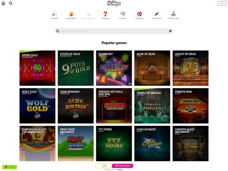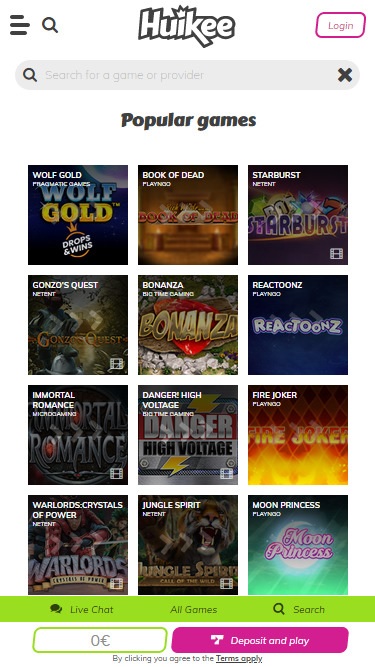 正如介紹部分所暗示的,Huikee Casino 與龐大的內容供應商網路合作。 Wild Streak Gaming、BlaBlaBLa Studios、Spribe、Quickspin、Pragmatic Play 和Playson等公司都在其營運商大廳提供遊戲服務。