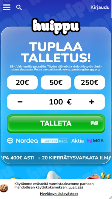 當然,除了精彩刺激的遊戲之外,玩家在Huippukasino還可以參與各種促銷活動並領取獎勵。歡迎禮包、儲值優惠、錦標賽、抽獎和免費旋轉等活動應有盡有,讓您隨時享受更高水準的遊戲體驗。