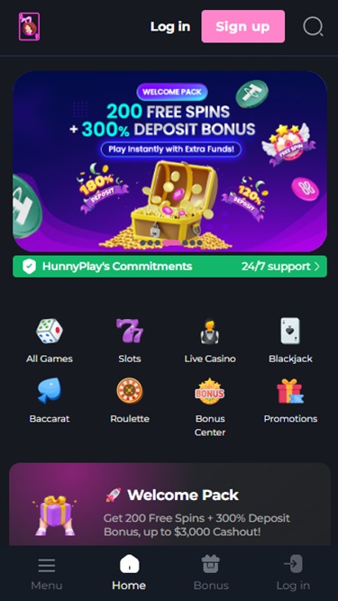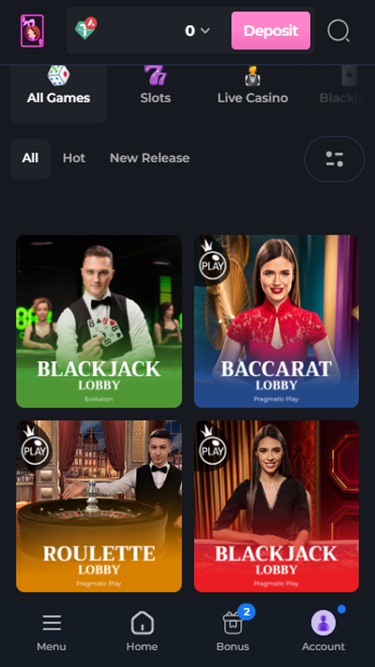 這家賭場色彩鮮豔,圖片生動,動畫效果搶眼,視覺上極具吸引力,而且賭場的網站設計既現代又方便用戶使用。它採用深色背景,並搭配粉紅色霓虹燈按鈕,營造出時尚亮麗的視覺效果,讓我們在訪問過程中非常享受。