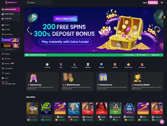 HunnyPlay Casino 的遊戲庫非常龐大,提供數千款遊戲。正如我們之前提到的,這個豐富的遊戲庫涵蓋了老虎機、桌上遊戲、真人娛樂場和虛擬體育賽事。
