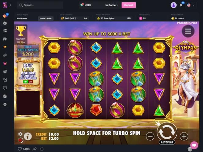 該賭場還推出了一種名為 HUSD 的內部獎勵貨幣,玩家首次存款即可獲得。該貨幣可以兌換為穩定幣(一種透過與參考資產掛鉤來保持價值穩定的加密貨幣),但不可轉讓或提取。