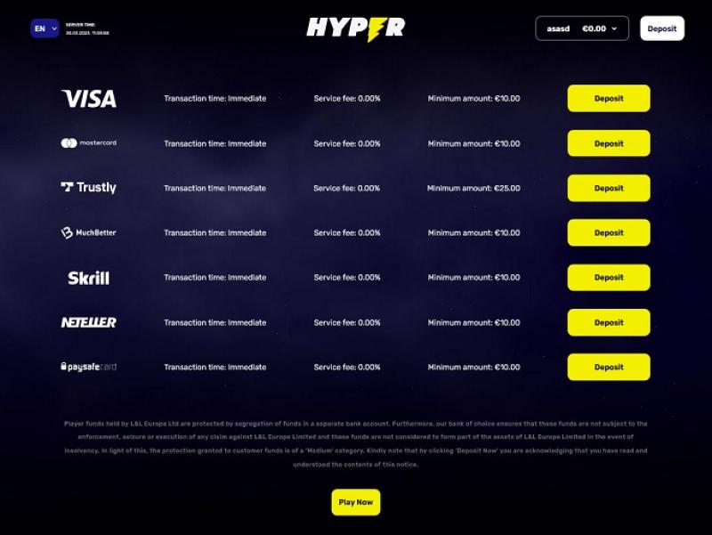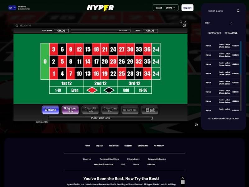 Hyper Casino 是由 L&L Europe Ltd. 經營的線上博彩網站。這間賭場設施完善,提供各式各樣的遊戲。整體來說,這裡相當不錯,不過缺乏 VIP 方案確實會限制那些經常在同一家網站玩的玩家。不過,如果您想找個休閒娛樂的地方,Hyper Casino 絕對是您的最佳選擇。