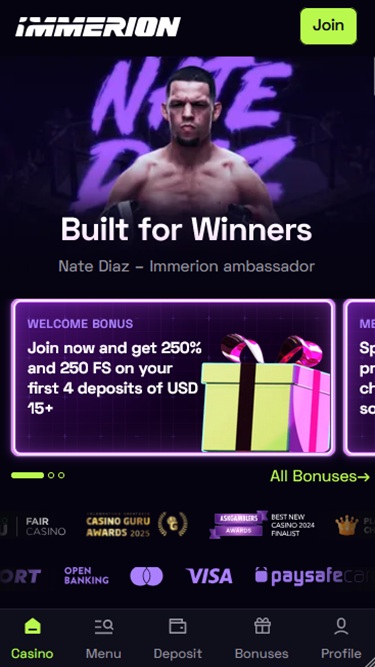 Immerion 還提供值得注意的歡迎優惠,因此如果您剛剛註冊了一個新的賭場帳戶,您將收到一個歡迎禮包,可用於您在賭場的前四次存款。