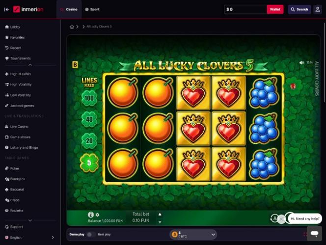 Inmerion Casino 是一家線上體育博彩營運商和賭場,由一家在塞席爾註冊的公司擁有,但截至本文撰寫時,該公司尚未獲得任何已知 iGaming 管轄區的牌照。該業者面向匈牙利、奧地利、德國和加拿大的客戶。