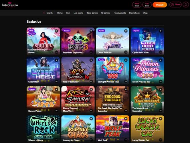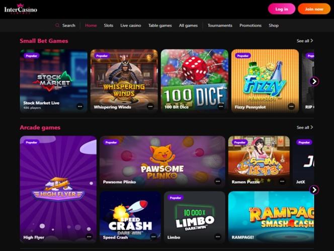 InterCasino 由 Amaya, Microgaming, Net Entertainment, Playtech, 1x2gaming, Barcrest, Big Time Gaming, ELK Studios, Evolution Gaming, EYECON, Ezugi, Habanero Systems, iSoftBet, lightningboxgames, Oryx, Play'n GO, Quickspin, Rabcat, Relax Gaming, Thunderkick, Yggdrasil, Wazdan, Realistic Games, Booming Games, Stakelogic, Pragmatic Play, Nolimit City, Red Tiger Gaming, Fantasma Games, Kalamba, Spin Games, Skywind, Triple Edge Studios, Northern Lights Gaming, Evoplay, Stormcraft Studios, OneTouch, Electric Elephant Games, Pocket Games Soft, Triple PG, Bulletproof Games, All41 Studios, Gameburger Studios, Pulse 8 Studios, Slot Factory, Neon Valley Studios, Shuffle Master, SpinPlay Games, HungryBear Gaming, SmartSoft Gaming, Blue Guru Games, Buck Stakes Entertainment, Games Global, Bally Technologies, bluberi, Endemol Games, Leander Games, NextGen, NYX Interactive, Push Gaming, Tom Horn Gaming, WMS, Gaming Realms, SG Interactive, Gamomat, Red7Mobile, CORE Gaming, Scientific Games, Side City Studios, Iron Dog Studio, Foxium, Betdigital, Just For The Win, Reflex Gaming, PearFiction Studios, Wild Streak Gaming, Slingshot Studios, Fortune Factory Studios, Jade Rabbit Gaming, STHLM Gaming, 4ThePlayer, AvatarUX, Gamevy, Crazy Tooth Studio, Pirates Gold Studios, ReelPlay, Japan Technicals Games, Alchemy Gaming, Snowborn Games, Boomerang Studios, Hacksaw Gaming, Max Win Gaming, Gold Coin Studios, Bang Bang Games, Slotmill, SilverBack Gaming, Peter And Sons, Aurum Signature Studios, Area Vegas, RAW iGaming, Leap Gaming, Wishbone Games, Spribe, Print Studios, Gaming Corps, Four Leaf Gaming, INO Games, Nailed It! Games, Atomic Slot Lab, Neko Games, Reel Kingdom, Oros Gaming, Indigo Magic, Light & Wonder and Live88提供支持,為客戶提供大量遊戲。這些遊戲可直接透過您的網頁瀏覽器訪問,無需下載即可註冊、存款和暢玩。