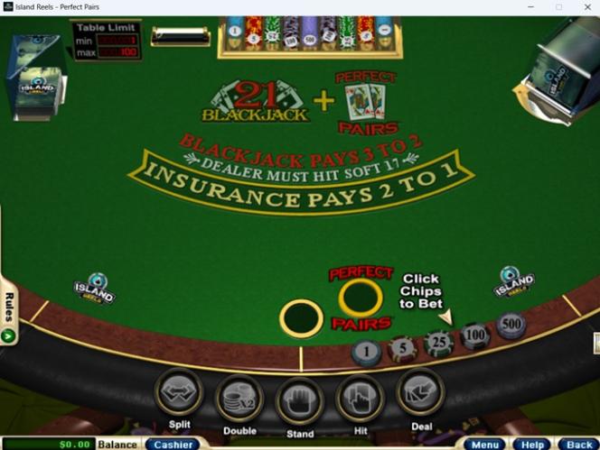 Island Reels Casino Blackjack with Perfect Pairs (Real Time Gaming)展開