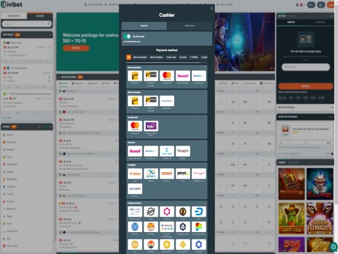 我們強烈推薦iviBet Casino,因為它允許玩家在眾多銀行選項中進行選擇。這是我們一直以來樂見的,因為它是吸引更多玩家加入平台的絕佳方式。在這裡,玩家可以選擇Visa、Mastercard、Neteller、Skrill、 Neosurf等熱門傳統支付方式進行存款和提款。 ivibet Casino也支援使用比特幣、Tether和瑞波幣等加密貨幣。