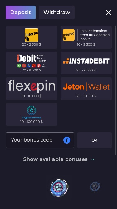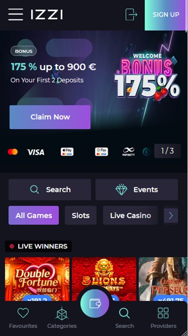 Izzi Casino 提供多種付款方式。玩家可以使用支付卡、電子錢包或流行的加密貨幣銀行選項。