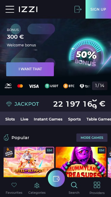 此外,還有各種每週獎金、充值獎金、現金回饋、生日獎金和其他獎勵優惠。別忘了精彩的線上老虎機錦標賽和Izzi彩票。