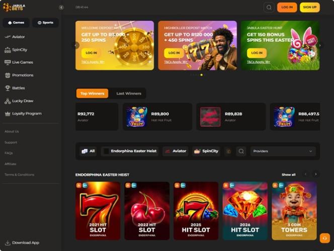 值得一提的是,無論作業系統和螢幕尺寸如何,所有裝置(包括桌上型電腦和行動裝置)都可以在這個前景廣闊的網站上暢玩線上賭場遊戲,因為 JabulaBets 針對個人電腦和行動裝置都進行了優化。敬請期待,我們即將帶您了解賭場遊戲庫中的遊戲。